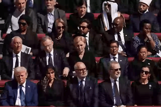 وكان ضمن الشخصيات البارزة الحاضرة الرئيس الأمريكي دونالد ترامب وزوجته ميلانيا ترامب، إلى جانب رئيس أوكرانيا فلاديمير زيلينسكي، ورئيس الوزراء البريطاني كير ستارمر، والأمير ويليام.