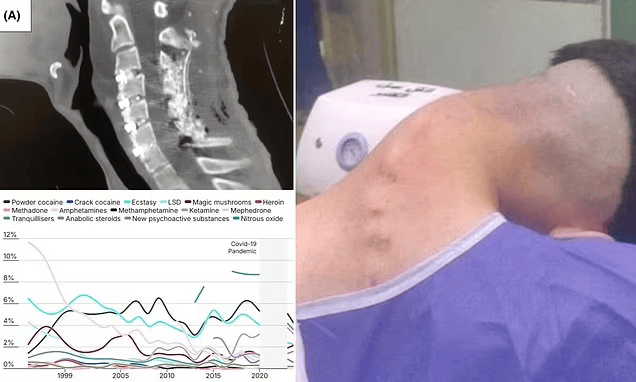 المريض، الذي لم يفصح عن اسمه، كان يعاني من اضطراب اكتئابي حاد وإدمان على الهيروين والأفيون والأمفيتامينات. وأوضح الأطباء في تقريرهم أن المريض كان بعد كل مرة يتعاطى فيها الأمفيتامين، يحافظ على وضعية منحنية لرقبته لساعات طويلة، ما أدى تدريجيا إلى تغير شكل فقرات العنق وتشوهها.