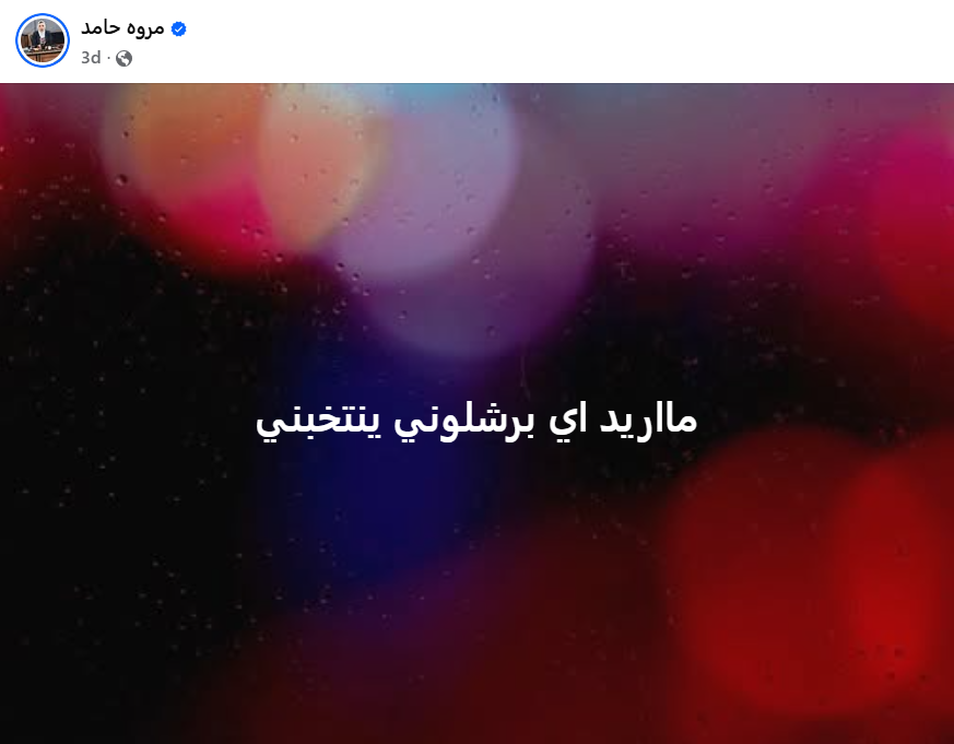 المرشحة عن تحالف التفوق في محافظة صلاح الدين، مروة حامد، أشعلت منصة فيسبوك بمنشورها الذي جاء فيه أنها "لا تريد أن ينتخبها أي عراقي يشجع فريق برشلونة الإسباني"، وهو تصريح غير مألوف على الإطلاق في المشهد السياسي والانتخابي العراقي.