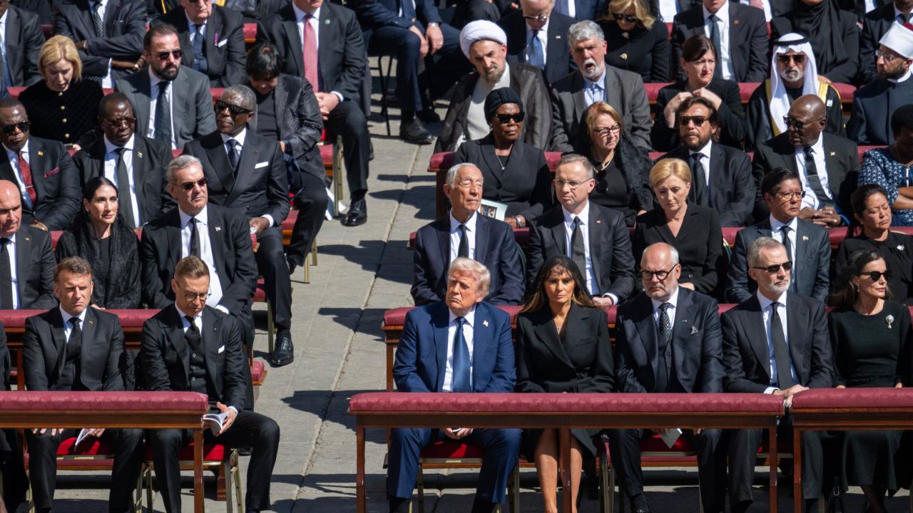 في جنازة البابا فرنسيس، حيث ارتدى العالم الأسود احتراما، قرر ترامب أن يظهر بشكل مختلف ويرتدي بدلة زرقاء انتقده الجميع عليها. ولم يكتف بهذا، حيث استخدم هاتفه المحمول، ومضغ العلكة، وأغمض عينيه أكثر من مرة فيما بدا كغفوة قصيرة، ثم غادر الجنازة سريعا قبل اكتمال المراسم!