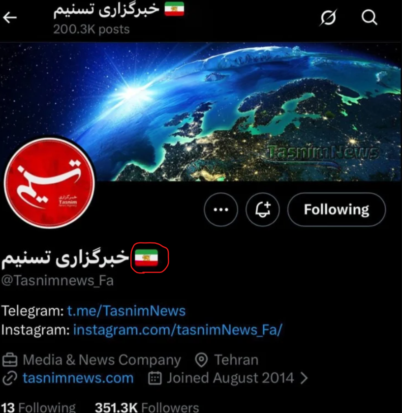 في توقيت حساس للغاية، لاحظ مستخدمو منصة «إكس» اعتماد نسخة مختلفة من علم إيران ضمن الرموز التعبيرية، حيث ظهر شعار «الأسد والشمس» المرتبط بفترة ما قبل عام 1979 بدل الرمز المعتمد رسميا منذ قيام الجمهورية الإسلامية.