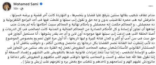 تعليق ساخر من محمد سامي على دعاوى عفاف شعيب القضائية!