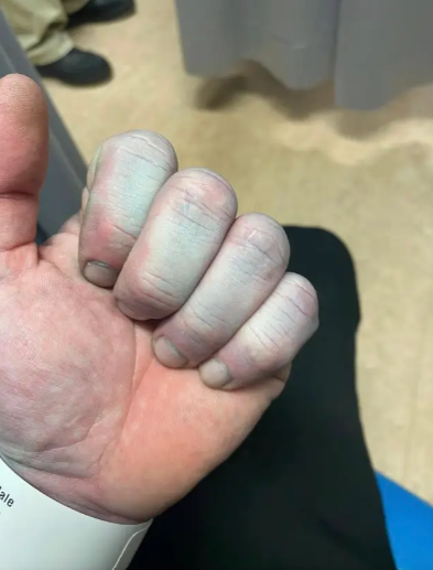 شهدت مستشفى في بريطانيا حادثة غريبة بعدما وصل رجل يبلغ من العمر 42 عاما إلى قسم الطوارئ وجلده مائل إلى اللون الأزرق بالكامل، ما أثار قلق الأطباء قبل أن يتبين لاحقا أن السبب كان أبسط مما توقع الجميع.
