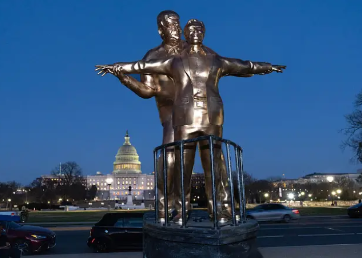 تمثال في واشنطن يجمع ترامب وإبستين في مشهد من «تايتانيك»!