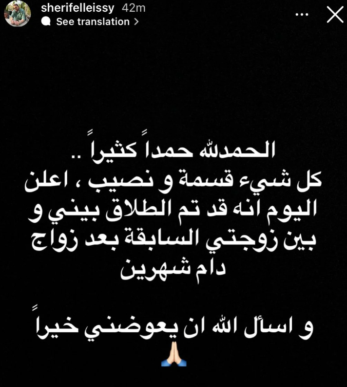 لكن هذه الزيجة لم تستمر طويلا، إذ وقع الانفصال في فبراير 2025 بعد شهرين فقط من الزواج، قبل إعلان الخبر رسميا في يوليو من العام نفسه، لتنتهي العلاقة الأولى ويبدأ فصل جديد في حياته بخطوبته المرتقبة على ملك أحمد زاهر.