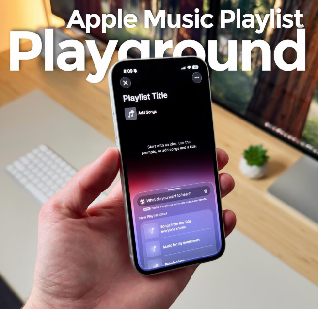 أضافت Apple Music ميزة "Playlist Playground" التي تتيح للمستخدم إنشاء قوائم تشغيل مخصصة عبر وصف الحالة المزاجية أو النشاط، دون الحاجة إلى اشتراك مدفوع.