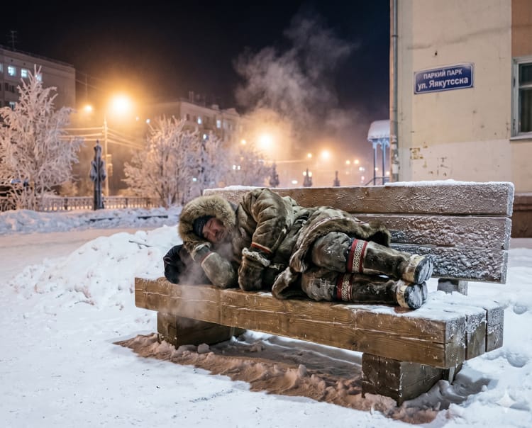 القصة بدأت عندما كان رجل روسي -لم يكشف عن هويته- في طريق عودته إلى منزله في مدينة ميرني بعد ليلة طويلة خارج المنزل. شعر بالإرهاق فقرر الجلوس على مقعد في الشارع لأخذ قسط من الراحة، لكنه غلبه النوم. ولم يعرف ما إذا كان تحت تأثير الكحول، إلا أن المؤكد أنه استسلم للنوم في ظروف قاتلة.